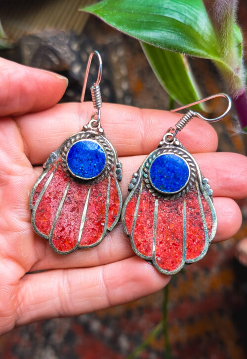 Lapis & Coral Hamsa Hand Earrings