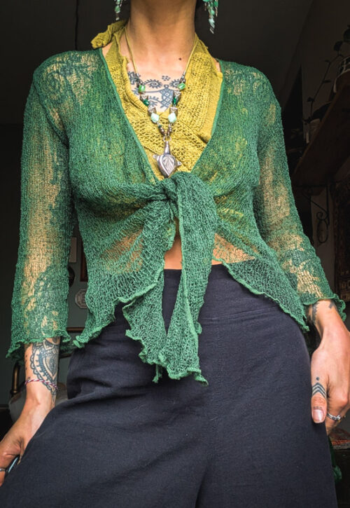 A delightful little shrug that goes with just about everything. Wear it open, tie it up, wrap it round - the choice is yours. Made from a loose and lightweight material that stretches and is comfortable. Material: Synthetic Size: One size comfortably fits up to a UK18 Amy is 5'8 UK12, Sarah is 5'4 UK10 -