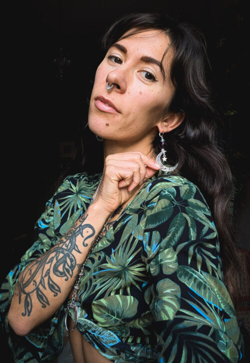 This is a limited edition line necklace made with vintage beads. Simple but statement making, this crescent moon necklace adds a witchy finish to your outfit. A large horn shaped moon centrepiece, bordered by vintage silver tone beads. This goes on simply overhead with no clasp at the back. Ideal for layering with some gemstones or leave on its own. Styling tip: to shorten this you can easily pop a little knot in the chain at the back and wear it higher up. Approx 50% recycled. Materials: Silver tone costume metal Size: 26"/66cm plus a 2"/5cm pendant -