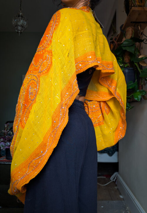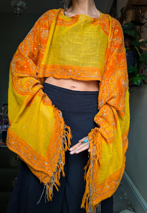 Upcycled Orange Beaded Oversize Top