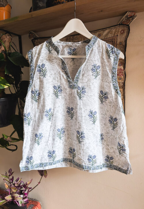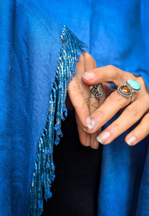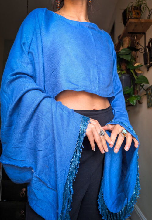 Upcycled Blue Beaded Oversize Top