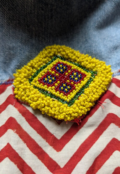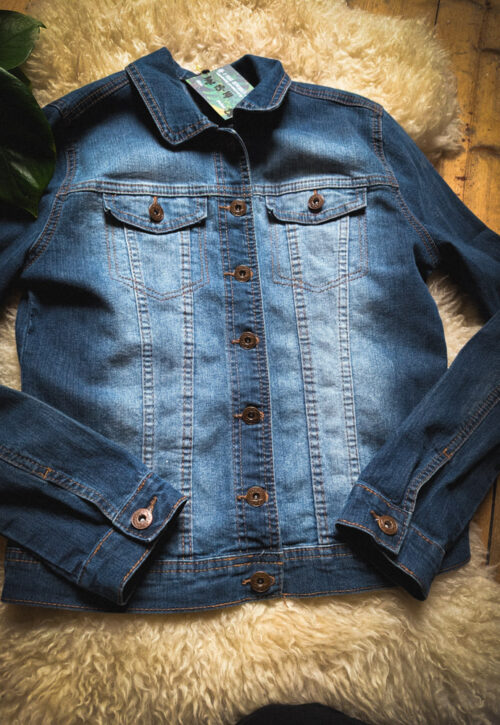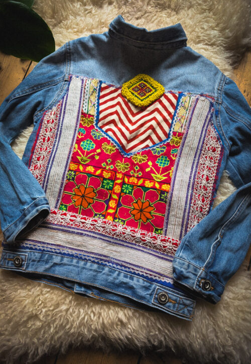 A preloved denim jacket reworked with a cute embroidered patch on the back and trimmings. All materials used to create this piece are sourced second hand! A one of a kind sustainable choice. Material: Cotton denim Size: 8 years Please note although we do our best to check, there may be minor signs of wear present on all our preloved pieces. -