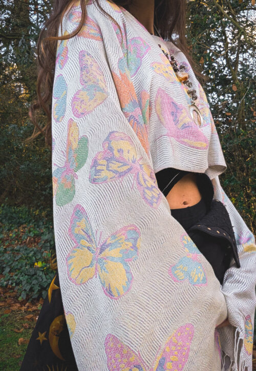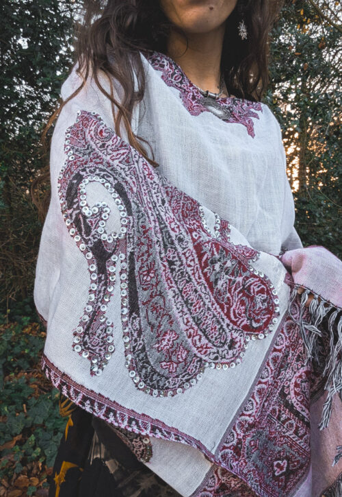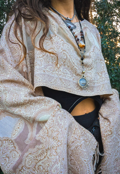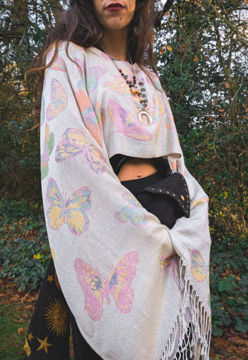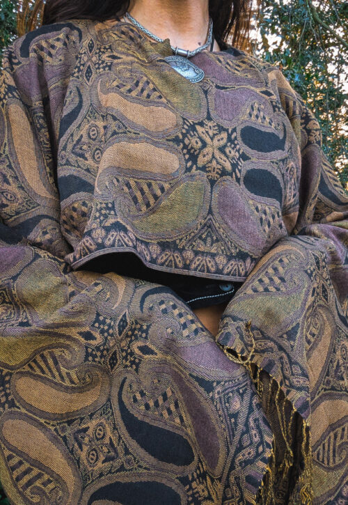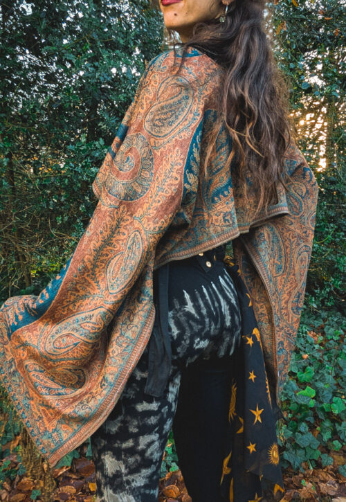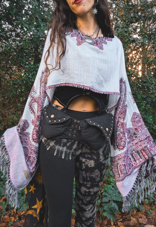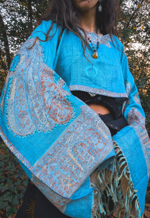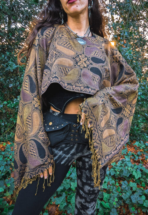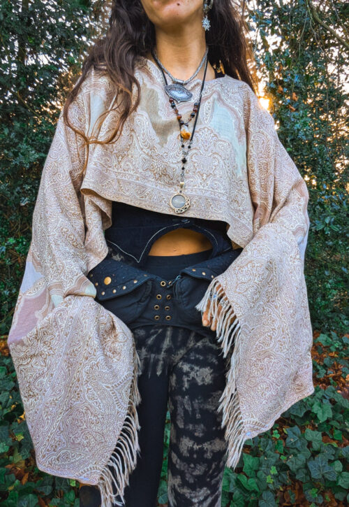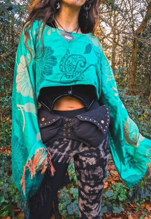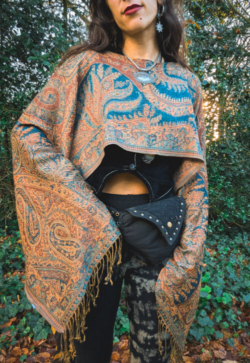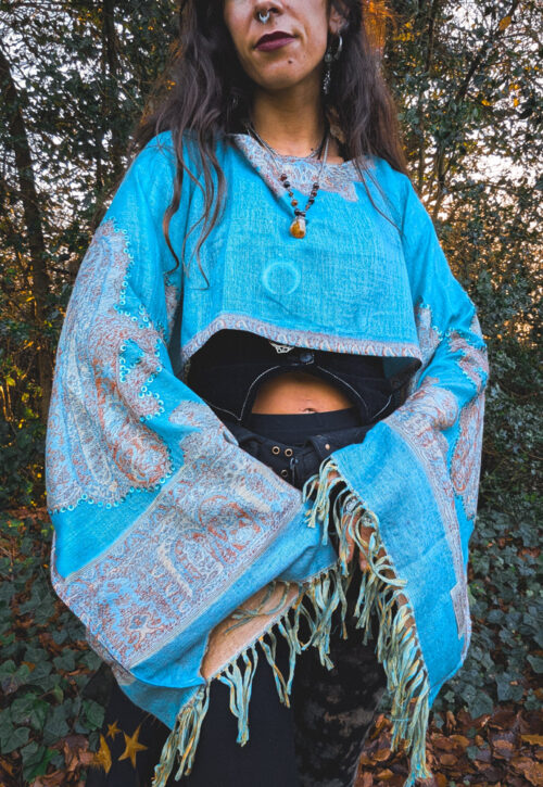 This is a one-off piece and can't be restocked We love scarves, but often find we have too many. So what do you do? You turn them into a long sleeved crop top. This has a very cropped middle, super long arms and relaxed fit. These are best for short torsos / petite frames or layer with a vest underneath. Just one bit of the neckline that frayed so has been zigzag stitched. Material: Viscose, wool Size: One size. Sarah is 5'5/165cm UK10 and it's an oversized fit Can be machine washed on a cool temperature (30C or less) to keep it looking its best. Please note although we do our best to check, there may be minor signs of wear present on all our preloved pieces. -