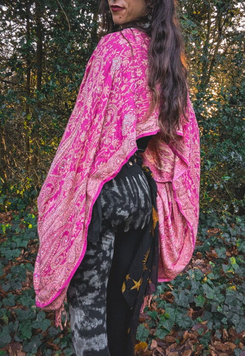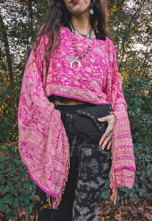 This is a one-off piece and can't be restocked We love scarves, but often find we have too many. So what do you do? You turn them into a long sleeved crop top. This has a very cropped middle, super long arms and relaxed fit. These are best for short torsos / petite frames or layer with a vest underneath. Just one bit of the neckline that frayed so has been zigzag stitched. Material: Viscose Size: One size. Sarah is 5'5/165cm UK10 and it's an oversized fit Can be machine washed on a cool temperature (30C or less) to keep it looking its best. Please note although we do our best to check, there may be minor signs of wear present on all our preloved pieces. -