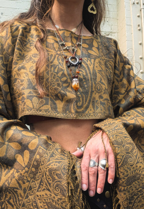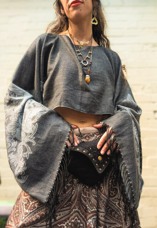 A comfy, slouchy and cute top to wear. This loose-fitting, baggy cropped top with long sleeves is an original design to us, based on a vintage top from Sarah's wardrobe that has gotten a lot of attention over the years. It's cut shorter in the middle and longer at the sides which makes it really flattering, especially with high-waisted pieces. Fully lined, so you can wear this year-round, it isn't see-through at all. Scroll down for related items we'd pair this with from our shop. This can be dressed every way from casually for a workplace to full on forest fairy. Material: Midweight cotton. Size: One size, select the size to bring up measurements Sarah is 5'4/163cm UK8-10 Fairly traded from Thailand -