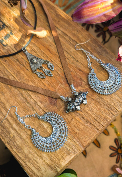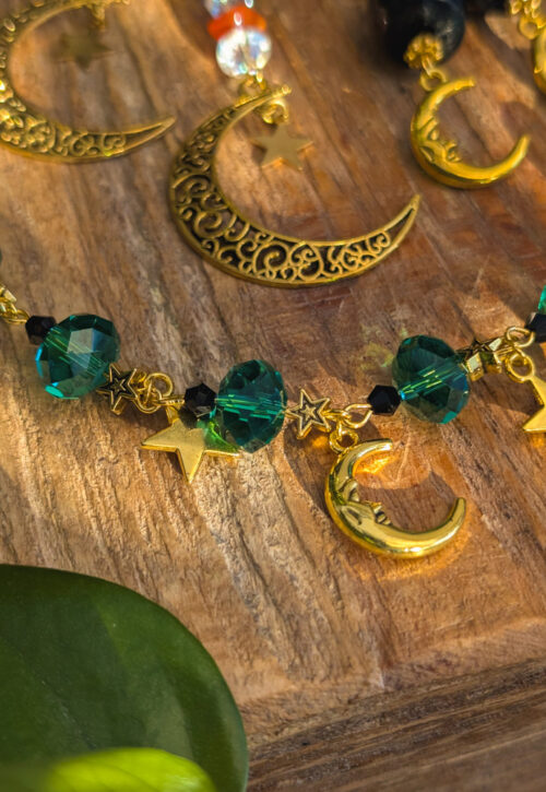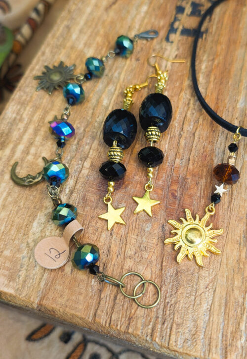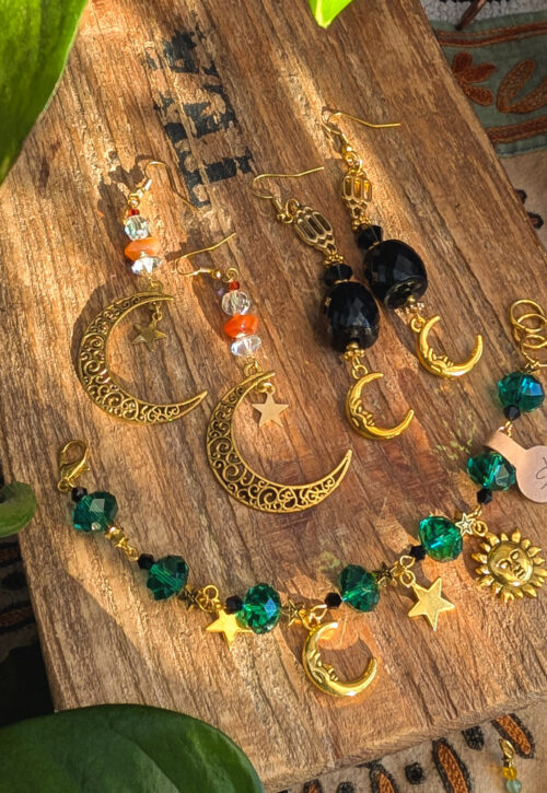 Bronze & Black Crystal Mismatch Sun & Moon Earrings