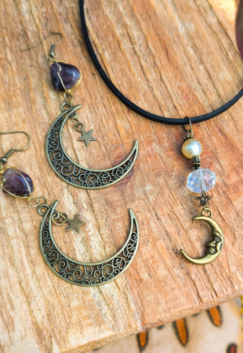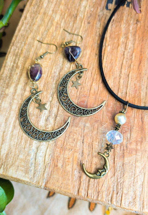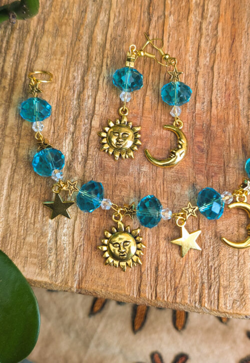 Bronze & Amber Crystal Mismatch Sun & Moon Earrings