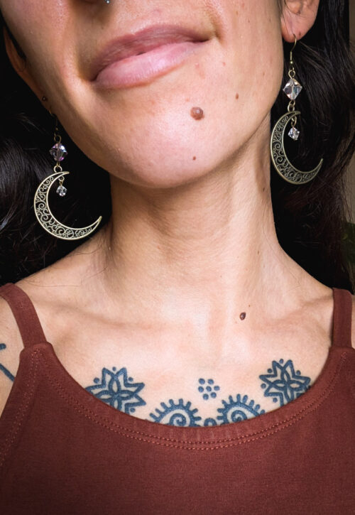 Bronze & Black Crystal Mismatch Sun & Moon Earrings