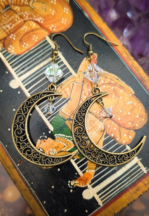 Bronze & Amber Crystal Mismatch Sun & Moon Earrings