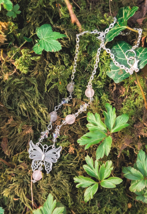 Rose Quartz Butterfly Necklace