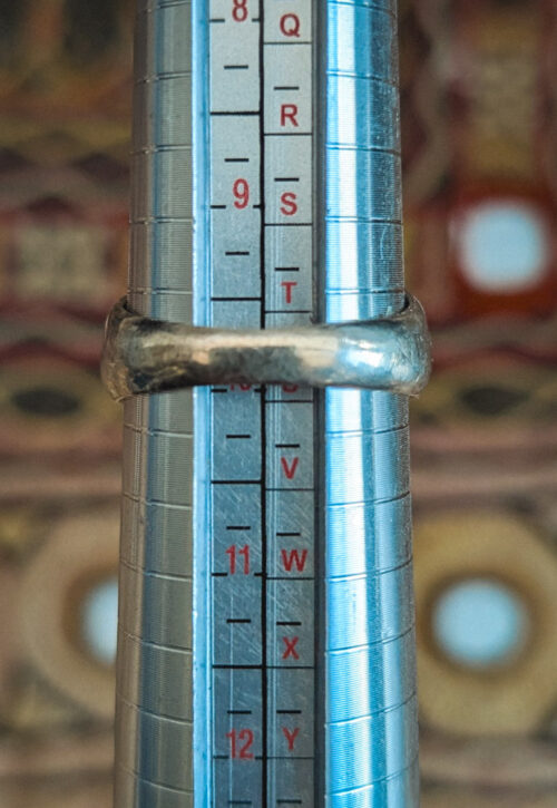 This is a one-off vintage piece and can't be restocked Lovely vintage ring with a moulded chain and dot design. This one isn't hallmarked but tested silver. Shows light surface marks as is characteristic of vintage jewellery on the inside. Material: Silver, stamped Size: UK R / US 8.75 / EU 59 Weight: 4g We recommend that all jewellery, no matter what its content, is kept away from water and chemicals and stored in a jewellery box to prevent tarnish and prolong its beauty. -