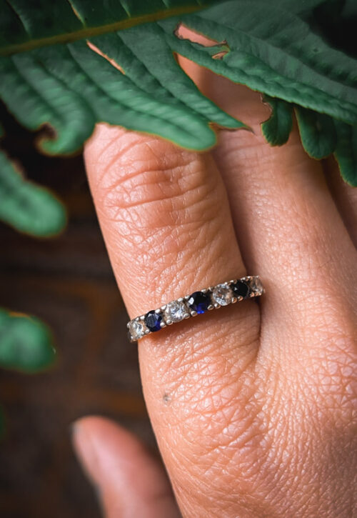 This is a one-off preloved piece and can't be restocked Simple silver ring with crystal details. In good preloved condition with light surface marks. Material: Silver, stamped 925 Size: UK P.5 / US 7.75 / EU 56.5 Weight: 2.5g We recommend that all jewellery, no matter what its content, is kept away from water and chemicals and stored in a jewellery box to prevent tarnish and prolong its beauty. -