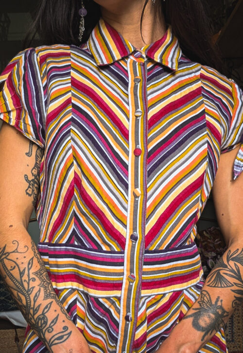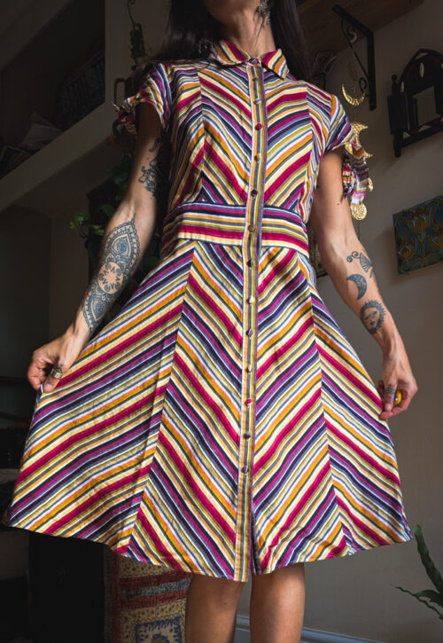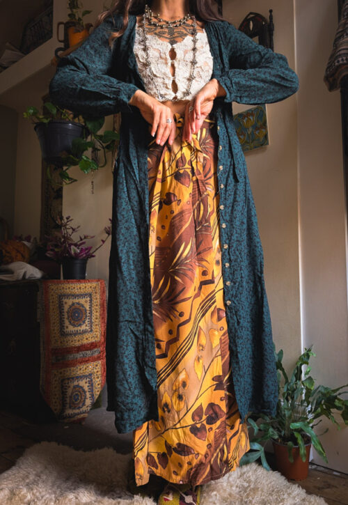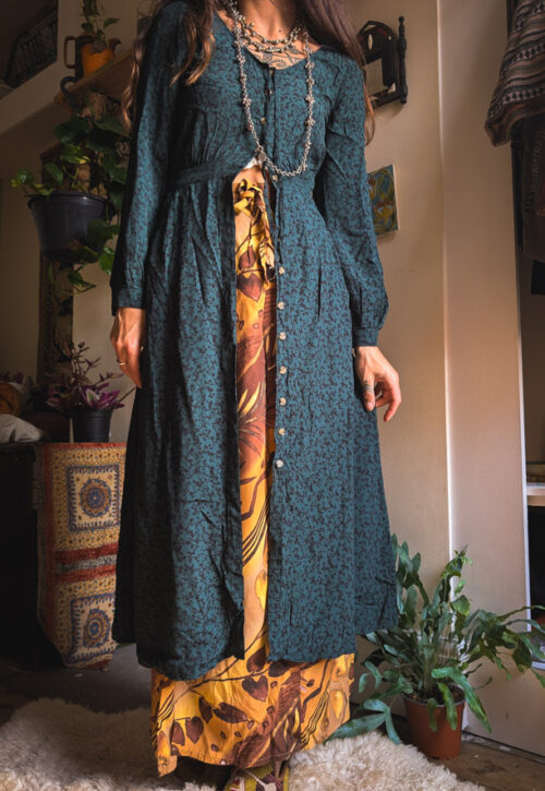 1970s Vintage Block Printed Gauzy Cotton Dress