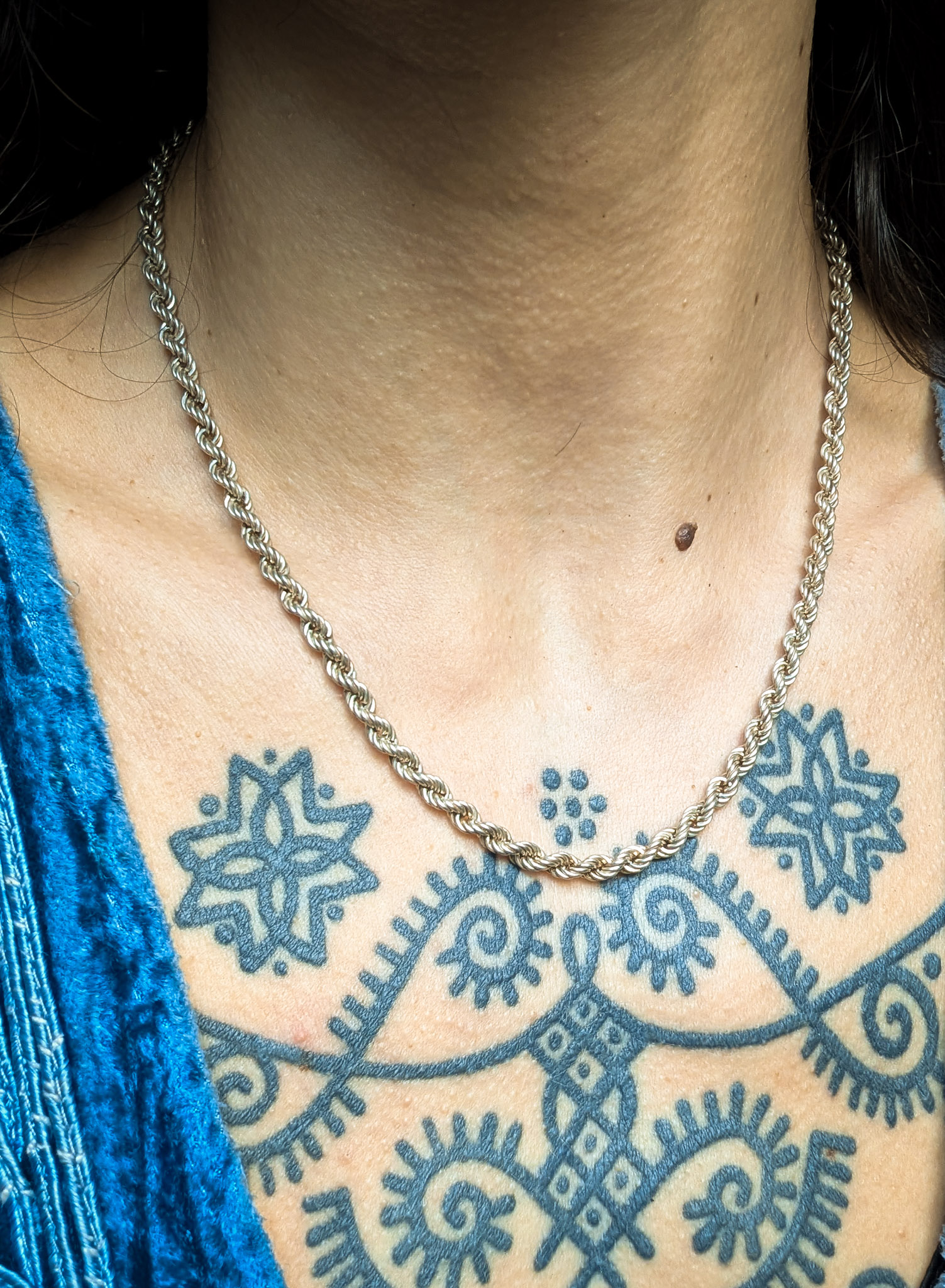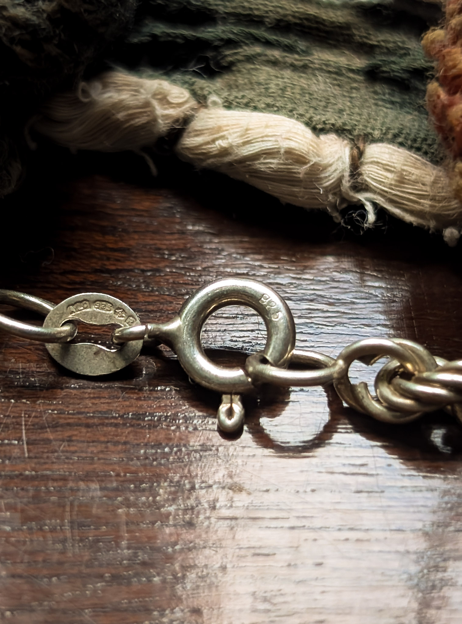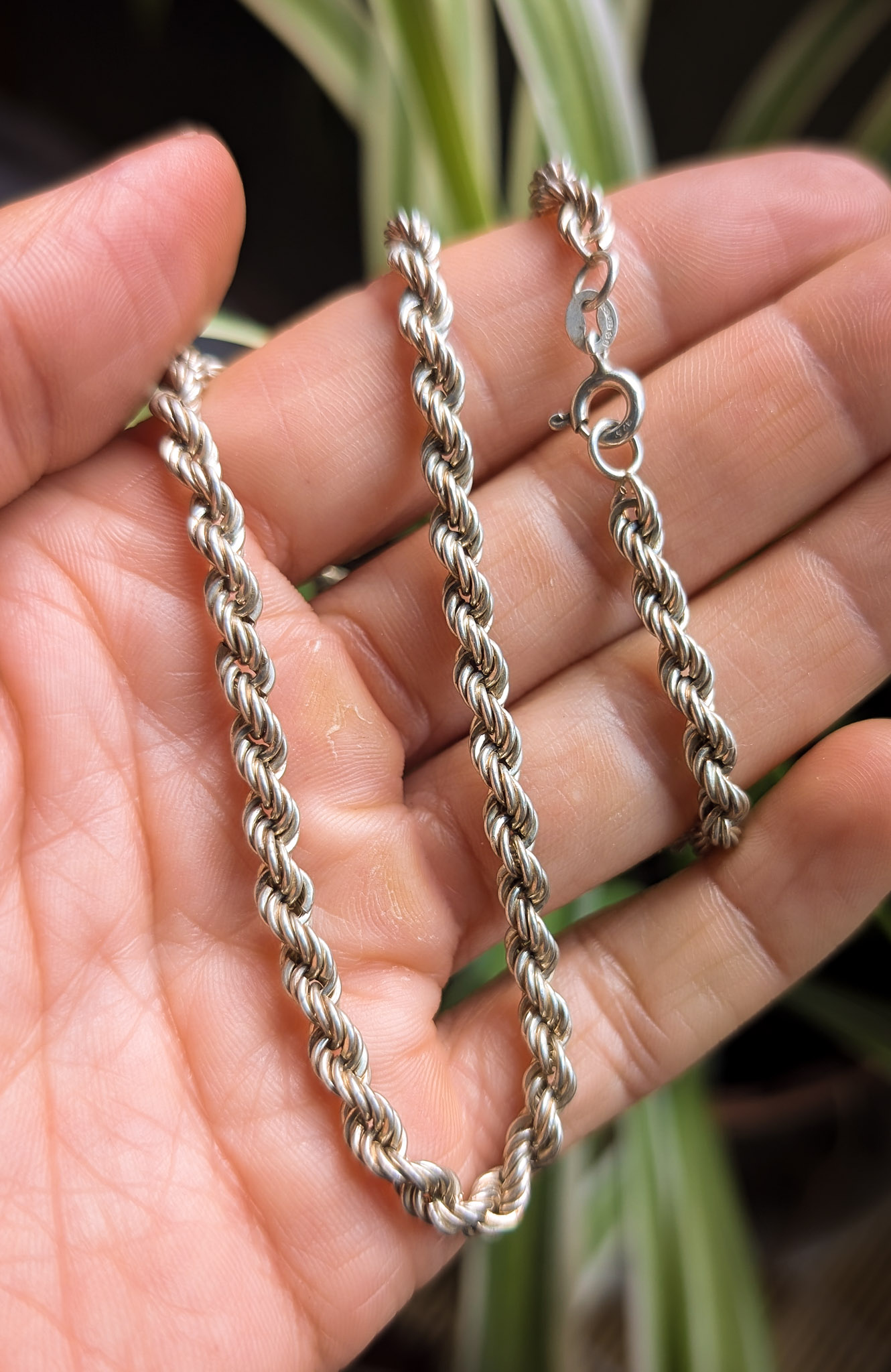 Classic silver twisted rope chain with a slight oxidised finish, ideal for wearing on its own, layered up or with a pendant as shown. Pendant and matching bracelet available separately.