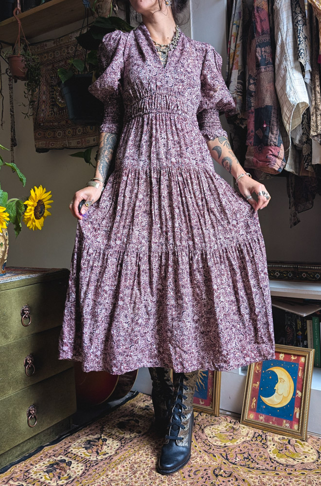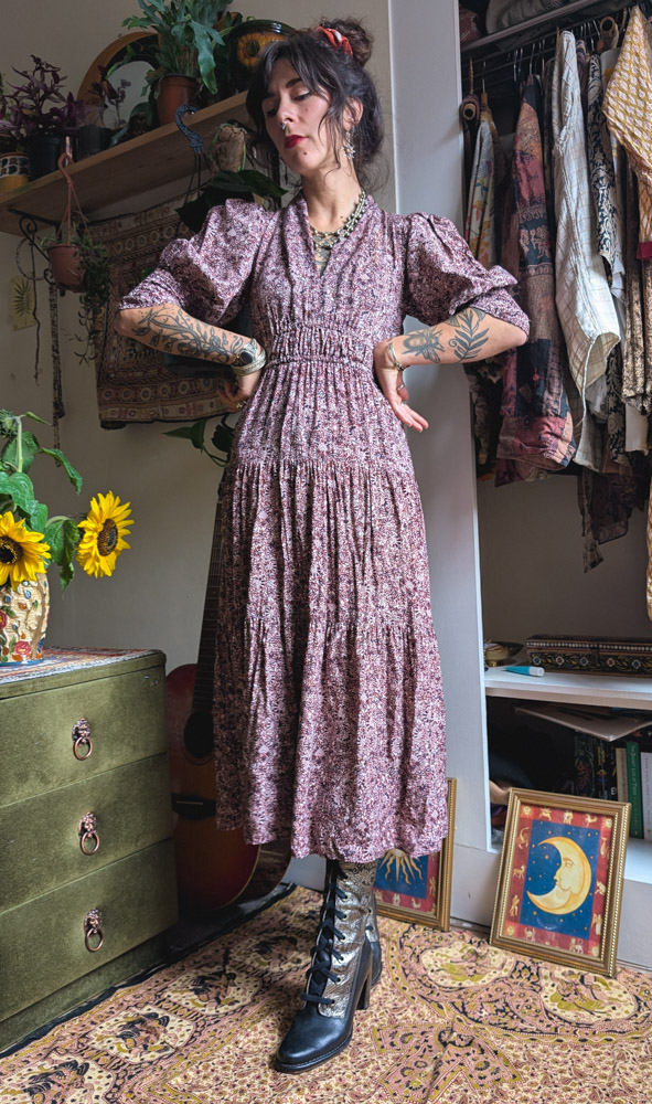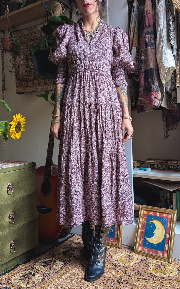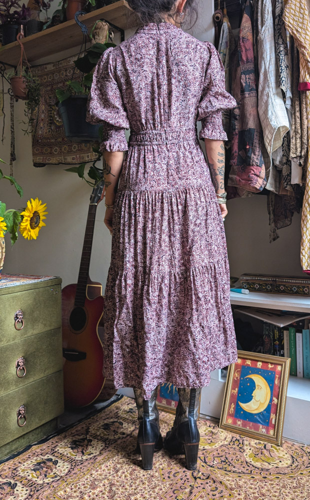 Classic bohemian dress from fancy brand Ba&ash (RRP €200+). Short sleeves, v-neck and elasticated waist with a long, tiered skirt. Concealed zip to fasten on the back. We have laundered this so it’s fresh and ready to wear.