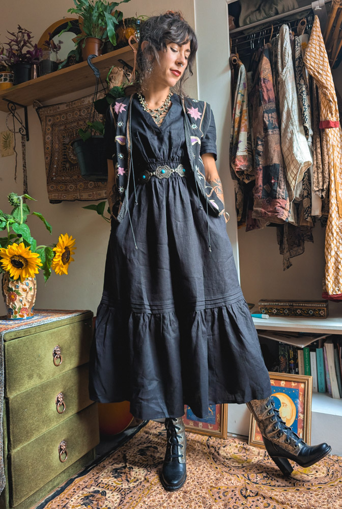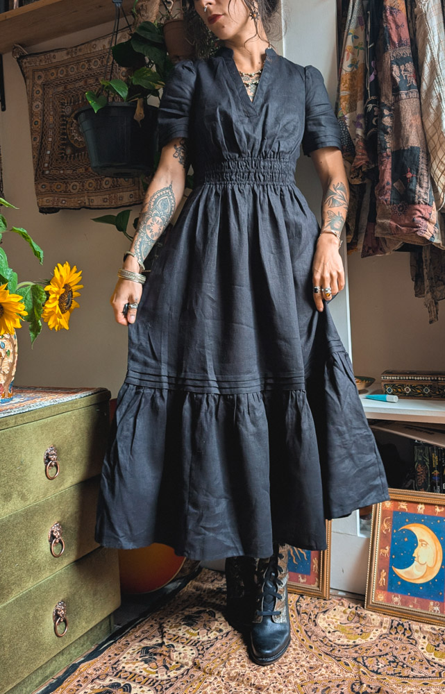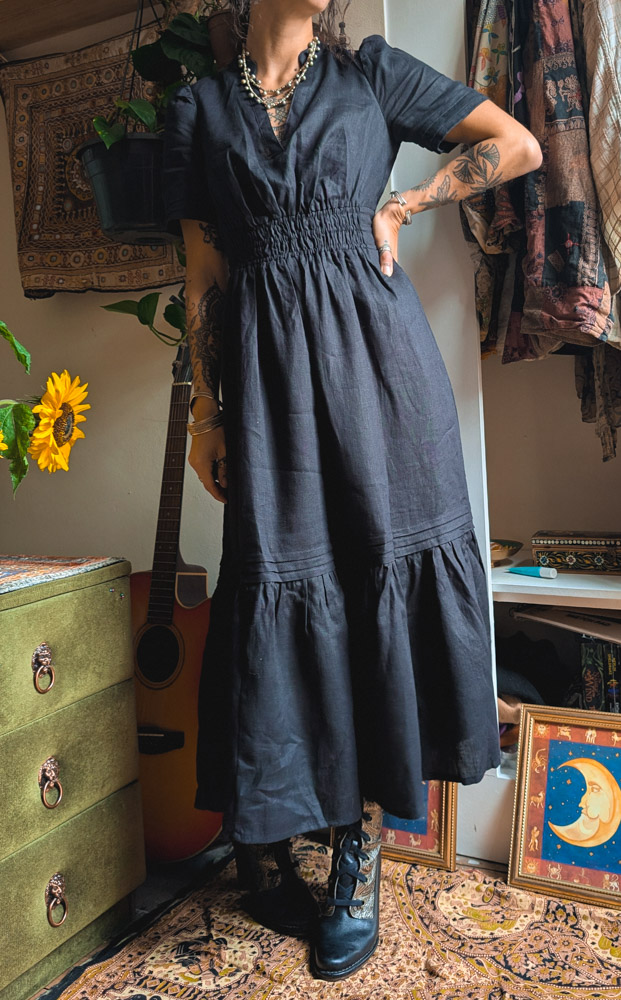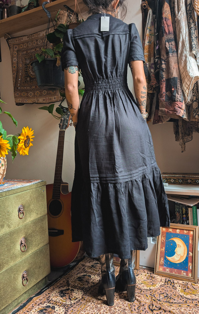 RRP £140. BNWT linen dress from fancy brand Boden. Flattering fit with an open, deep V neck, t-shirt sleeves, elasticated waist and tiered skirt. And yes, this has side pockets so it’s not only a wardrobe staple, but practical.