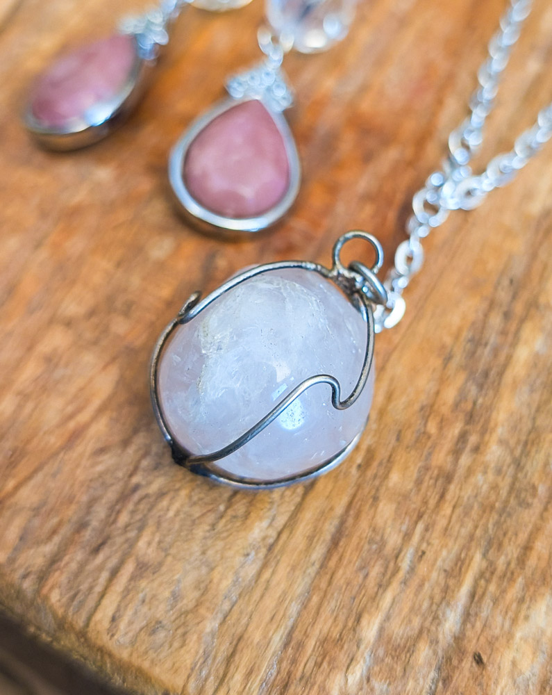 1 x y-drop necklace (recycled rose quartz, 14″)