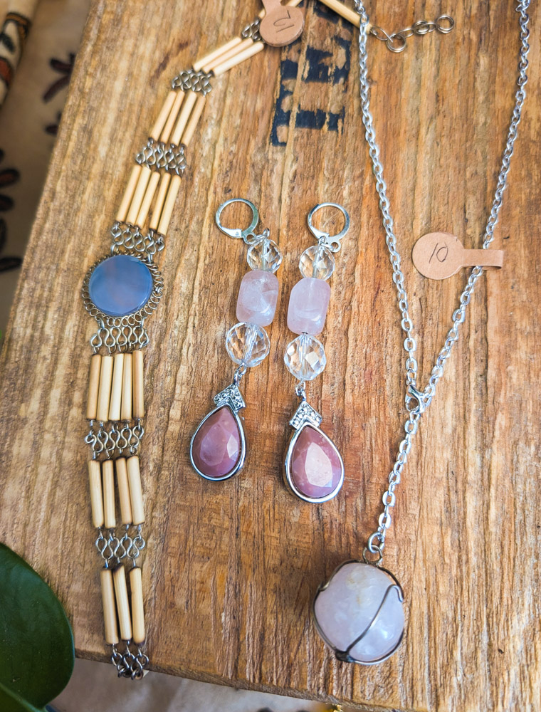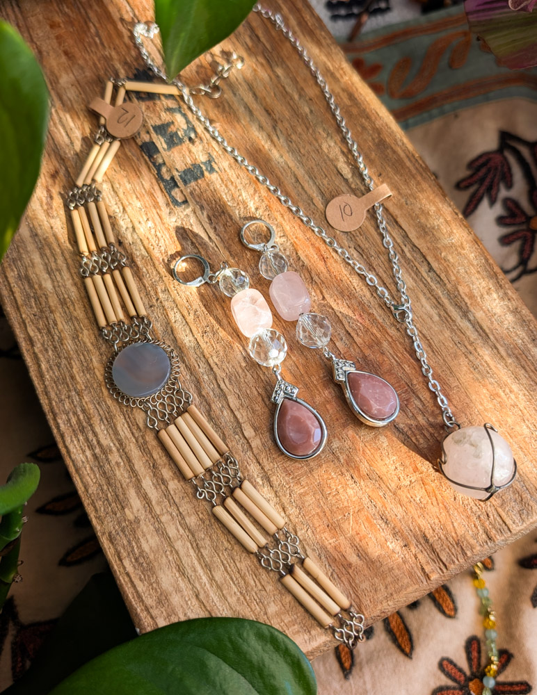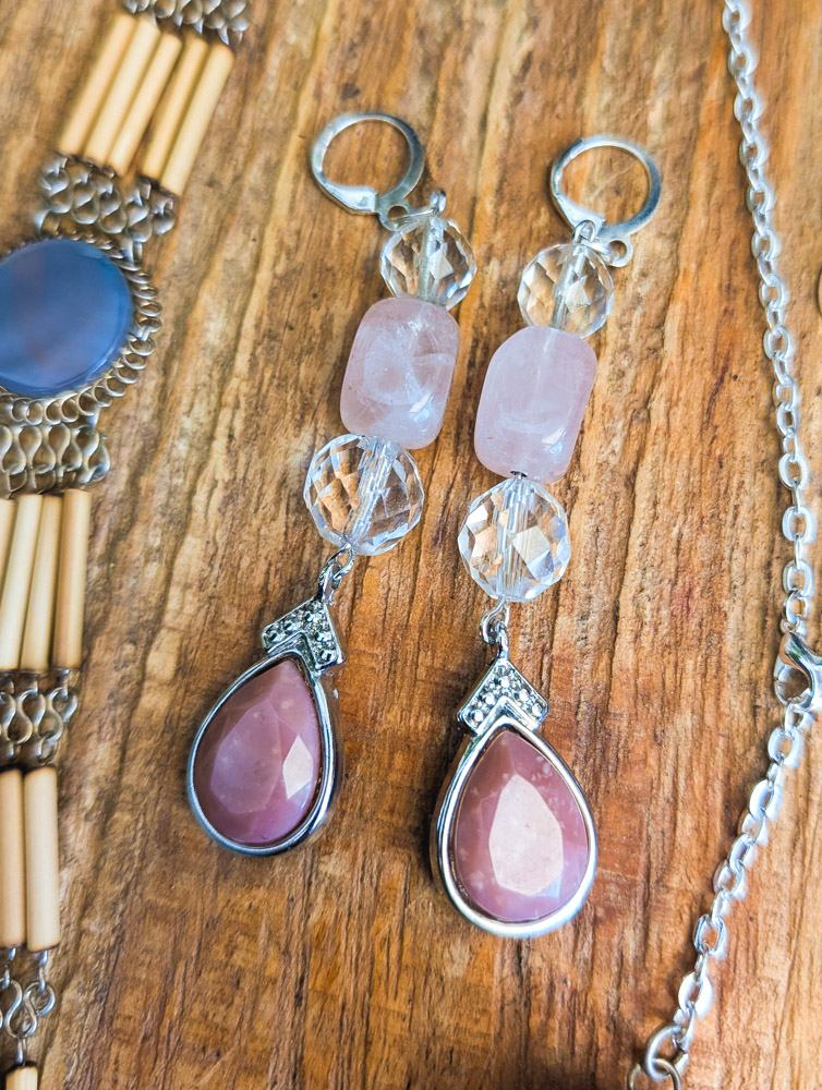 1 x earrings (recycled gemstone, pendants and crystal, midweight)