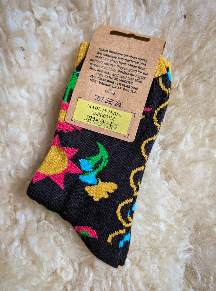 Cute and cosy fairtrade socks. Soft and breathable with a beautiful bohemian pattern. We’ve both owned and worn these socks and can testify that they last years!