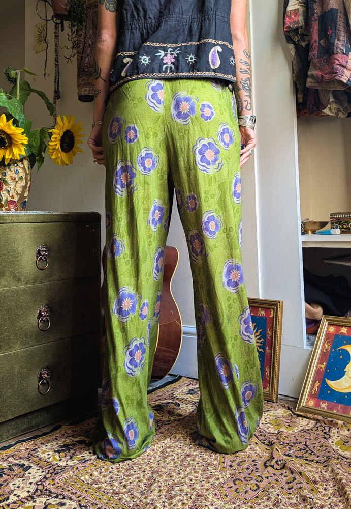 Cute, quirky trousers from ethical brand Gudrun Sjorden (RRP £89). Made from a flowy viscose in an almost shimmery green, these remind us of some of the 90s clothing Sarah wore as a kid! Fun, vibrant and comfy with a long straight leg and elasticated waist.