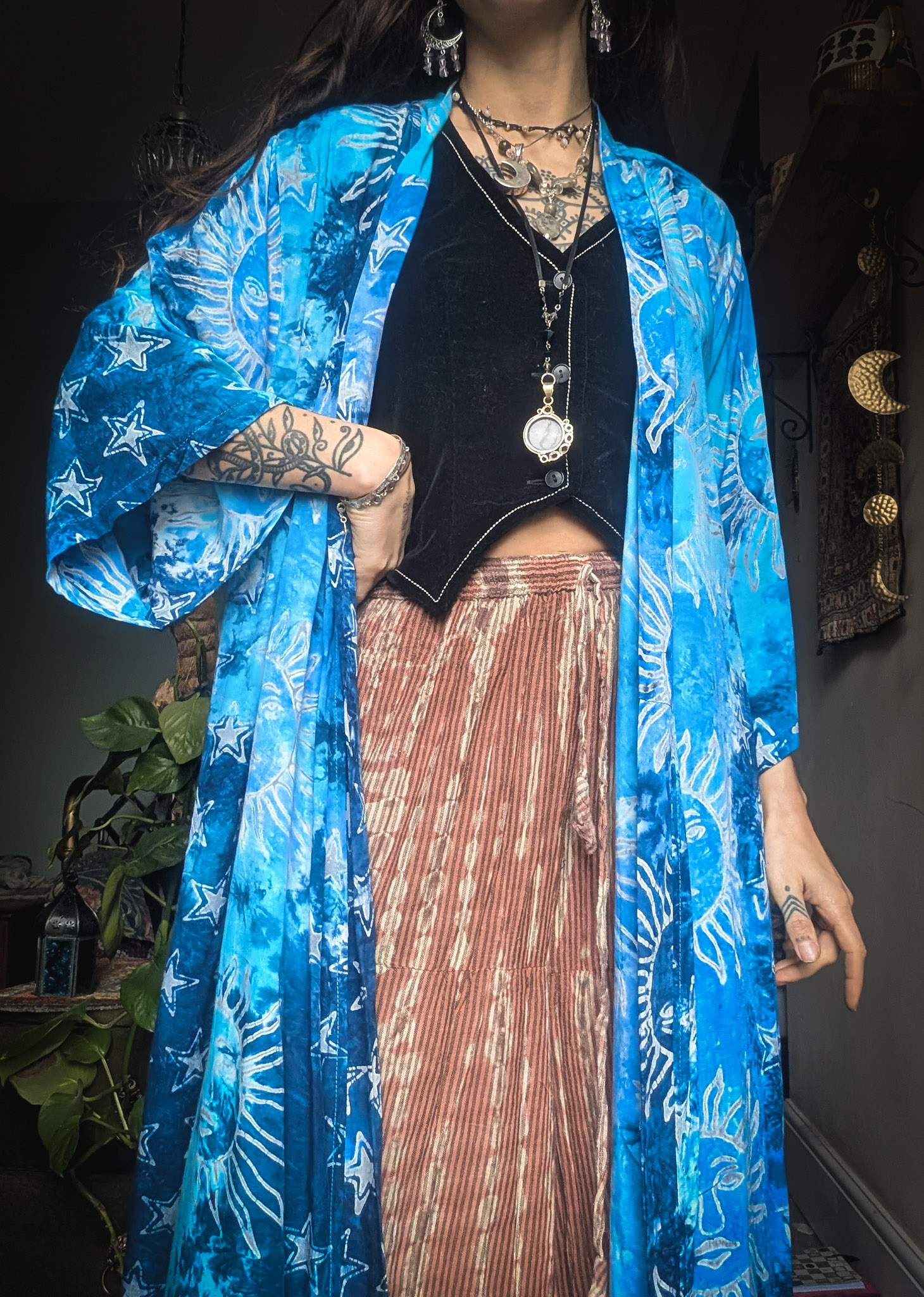 Introducing a new variant on our best-selling robe for A/W. The fit is loose and relaxed with wide sleeves, but can be given some shape with the additional belt. Wear it to lounge around the house or dress it up for an evening out – we’re also imagining this at festivals! Dress is up or down as you desire. Made from a mid-weight, floaty and durable rayon which keeps the chill off on a summer’s evening or whilst at home.
