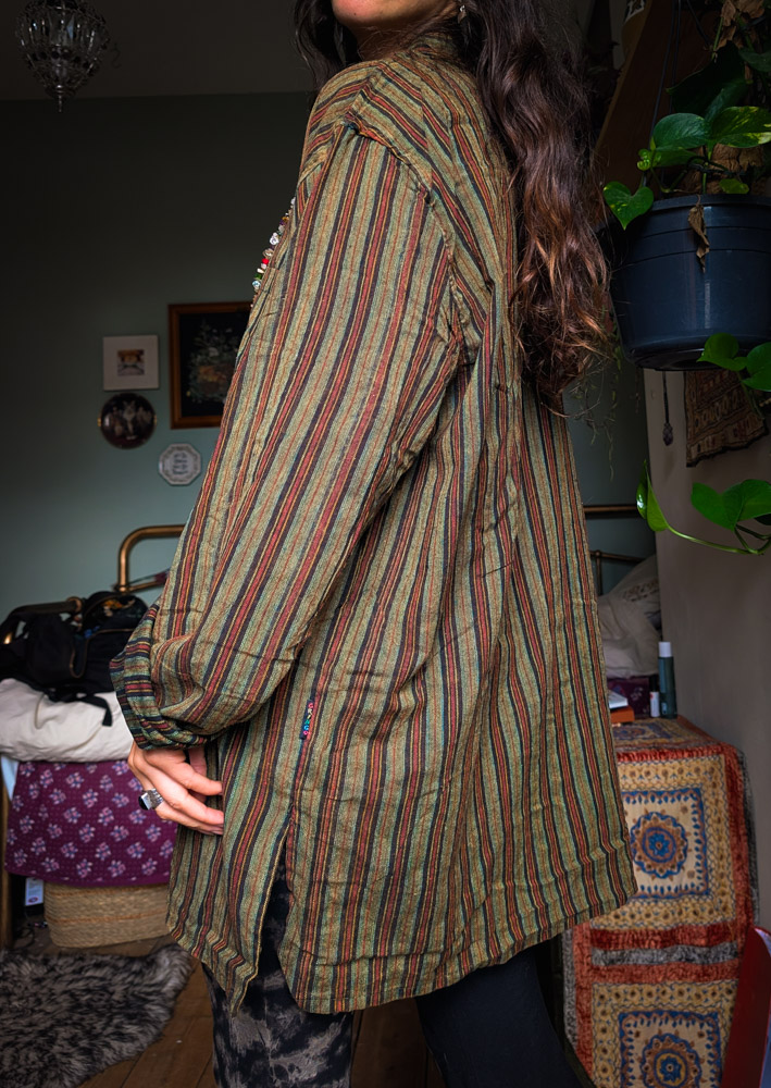 Fairly traded from Nepal, ensuring ethical and safe working standards for garment makers.