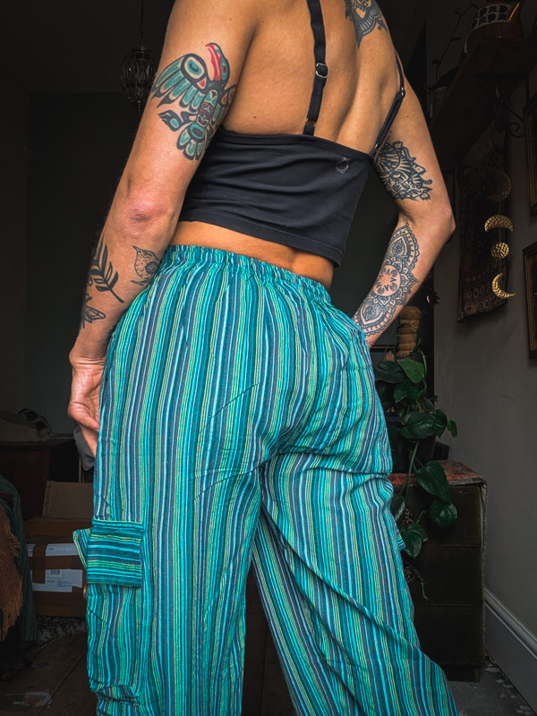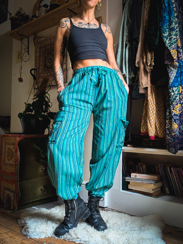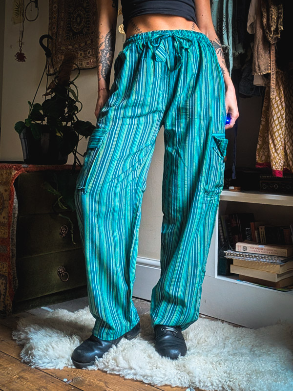 Say hello to your forever favourite trousers. Unisex comfy fit with elasticated waist, side, back and cargo pockets and a straight leg which looks cool rolled up. We love how versatile these are, we’ve worn them for nights out, lazy days in and even as pj bottoms!