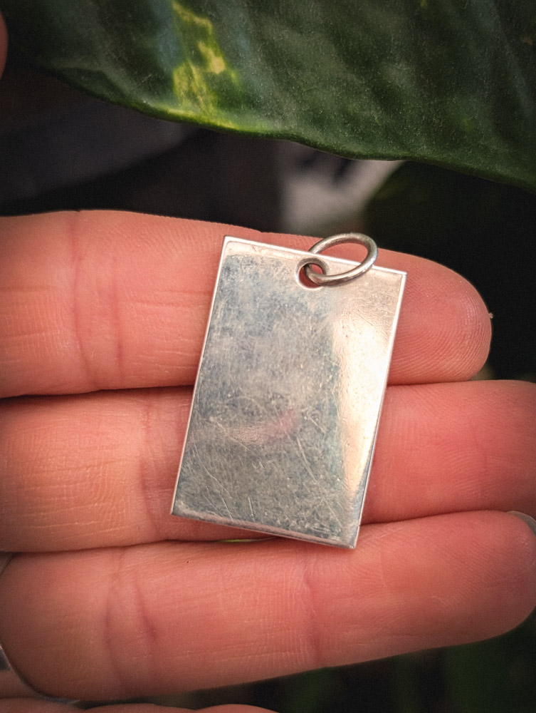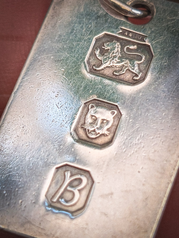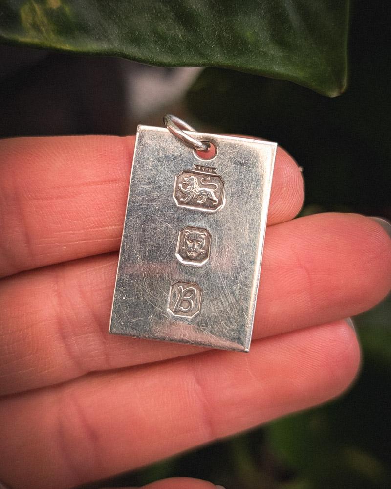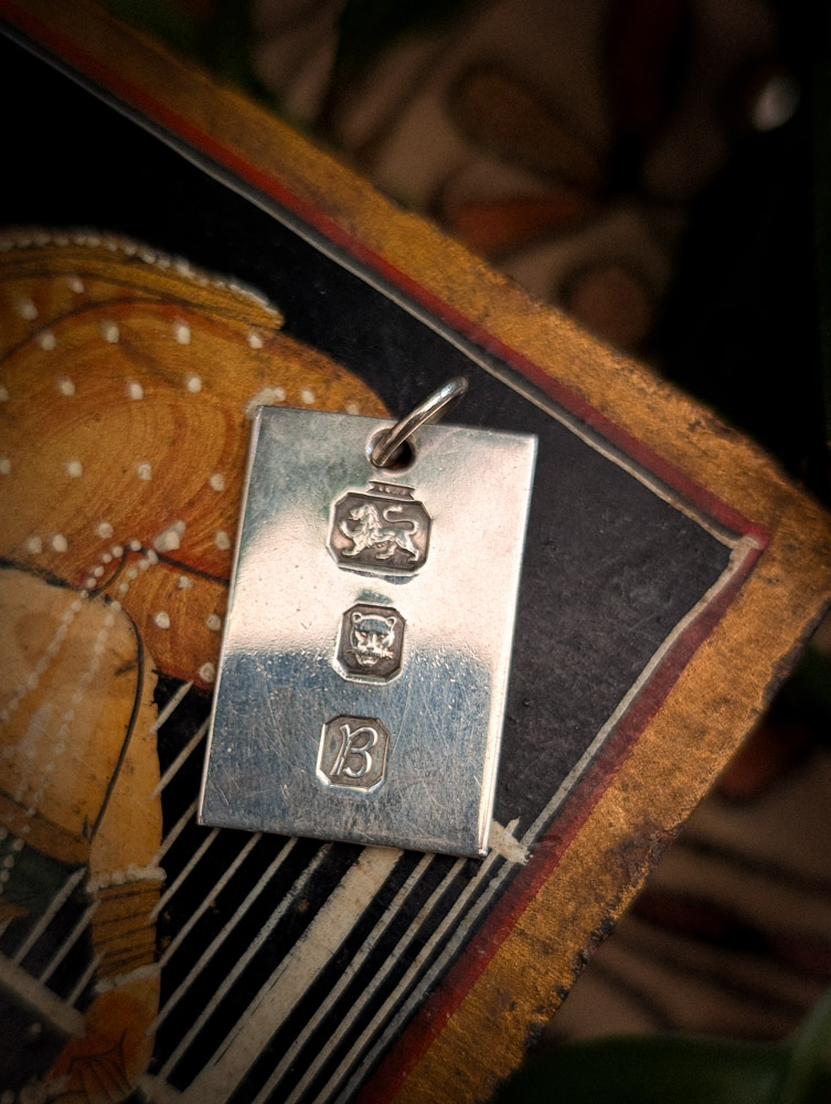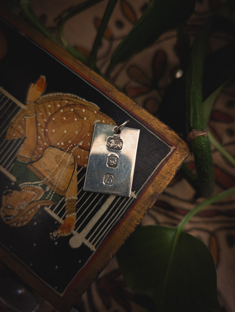 A classic, collectable ingot pendant made of solid silver and stamped with a lion, panther and letter b to show origin. Unisex.