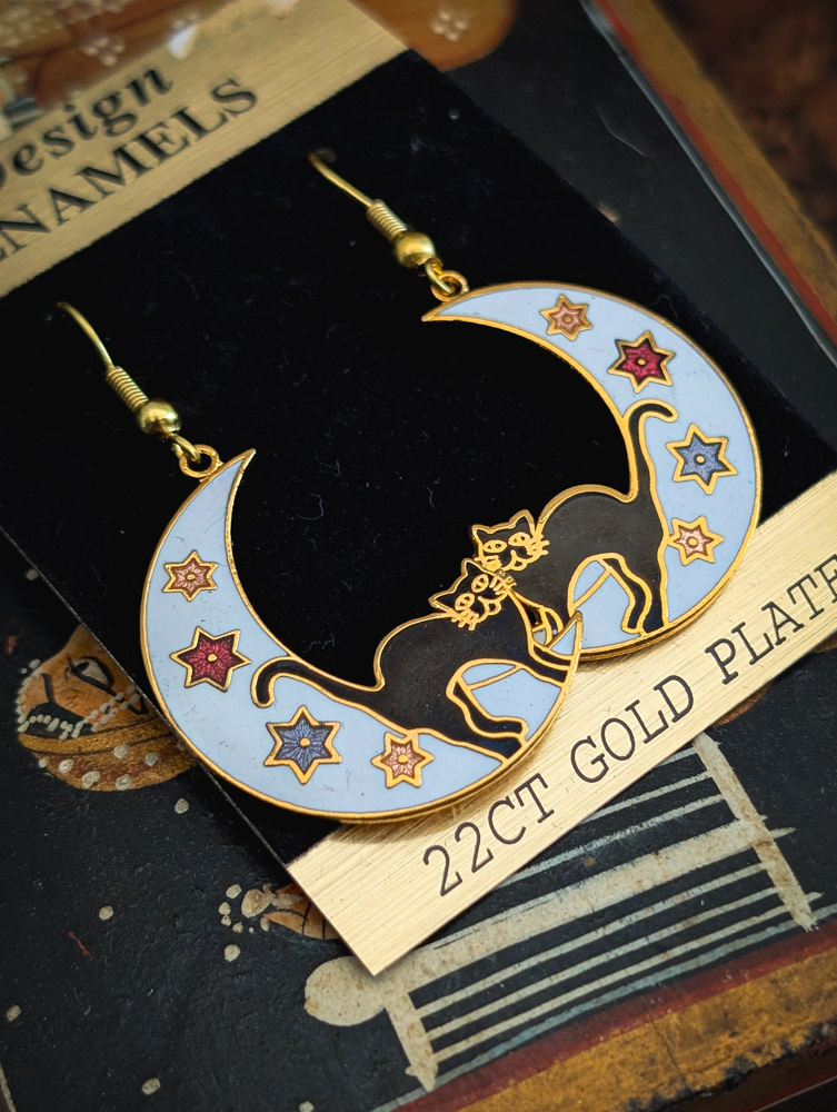 A one-off pair of gorgeous vintage enamelled cat earrings. These are deadstock, still on the original 90s card!
