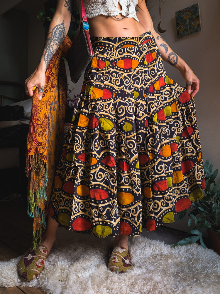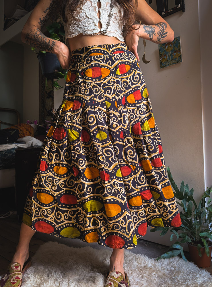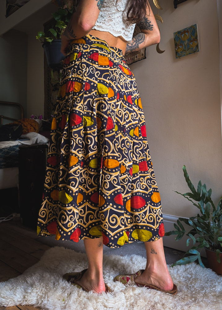 Beautiful St Michael skirt full of volume! Fitted on the waist with pleats that flare out. This is a nice mid-weight, great for autumnal layering. Concealed zip on the side with a fabric button.