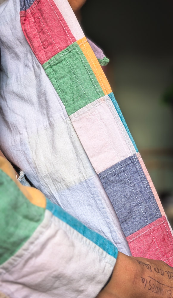 Lightweight 90s jacket from one of our favourite brands to find! Patches of soft, rainbow cotton with an open front, fully lined. This looks like it’s been altered to sit as an open jacket, it could be returned to a button-up with a little unstitching and some big buttons (of which we may have some vintage you can have if desired).